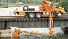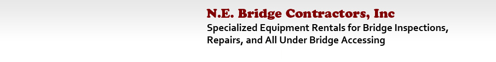 N.E. Bridge Contractors specializes in road and railroad bridge accessing equipment including: under bridge inspection snoopers, sectional barges, man lifts, and bridge rigging. We also provide marine construction and marine repair services including: commercial diving, underwater welding, scour and fender repairs, and sub-cable replacement. Our equipment can help you safely inspect, repair, and access every part of any bridge. We provide Hi-Rail under bridge trucks, Hi-Rail Man Lifts, and Hi-Rail bucket trucks for use on Class I railroads and Shortline Railroads.